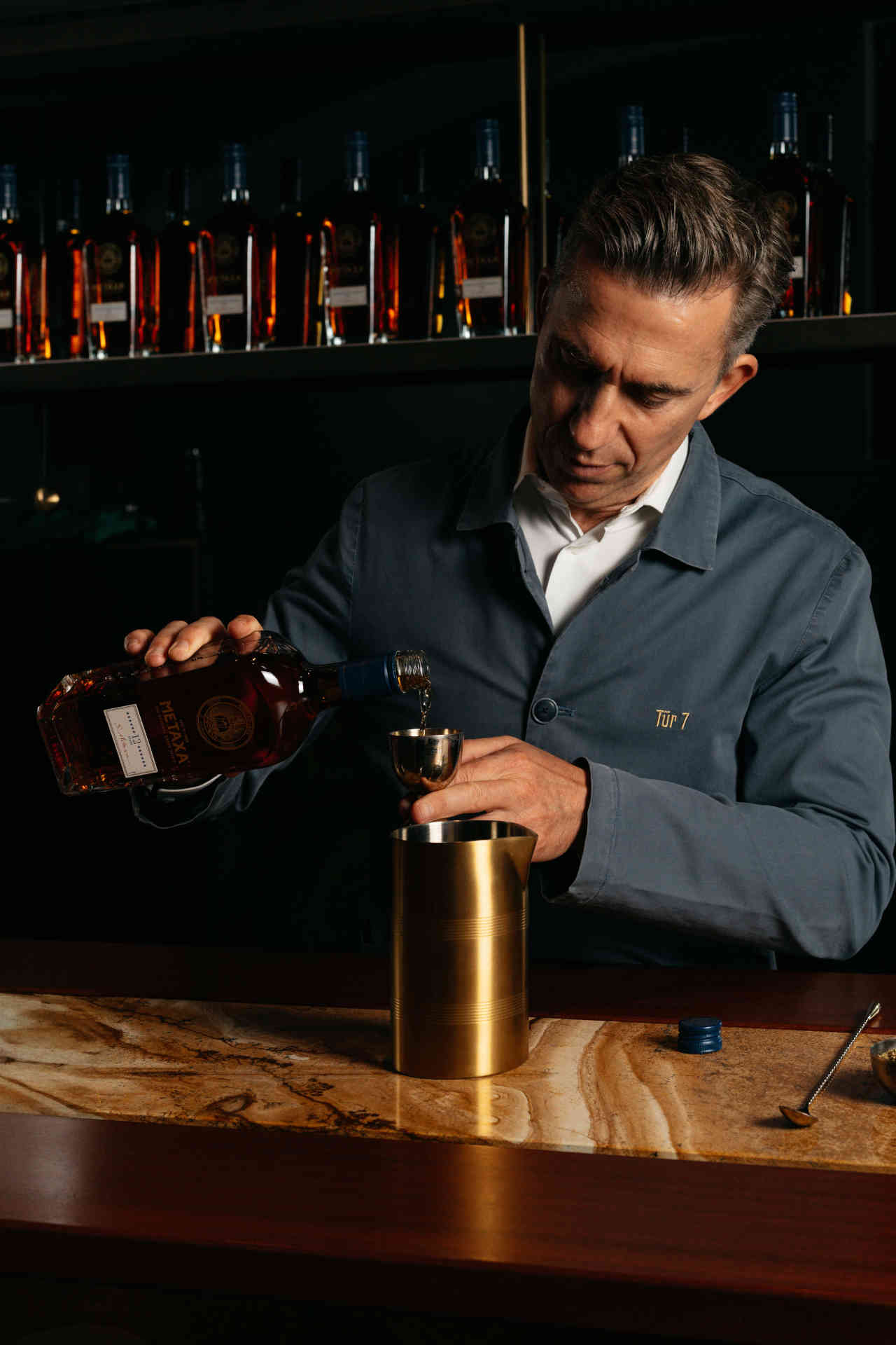 In September 2025, the Sarmatini celebrated its premiere at the American Bar Tür 7 in Vienna. Inspired by Greece and created by Gerhard Tsai, the cocktail combines two icons of Mediterranean culture: Sarmakinas premium olive oil and Metaxa 12 Stars.